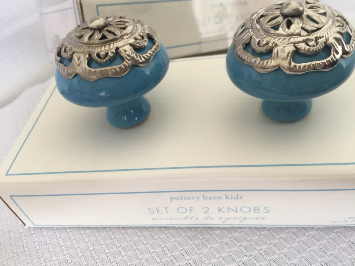 Pottery Barn Kids Knobs Drawer Pulls Sky Blue Silver Ceramic Brass Set Of 4 Nwt Ebay